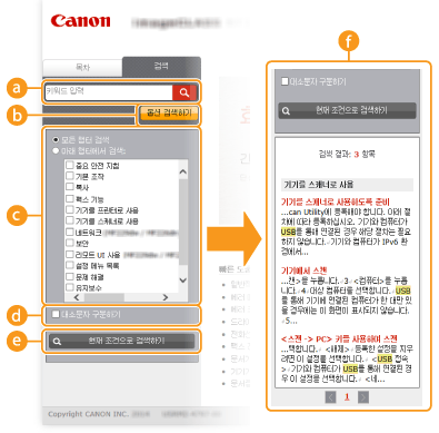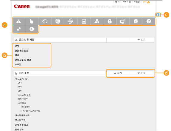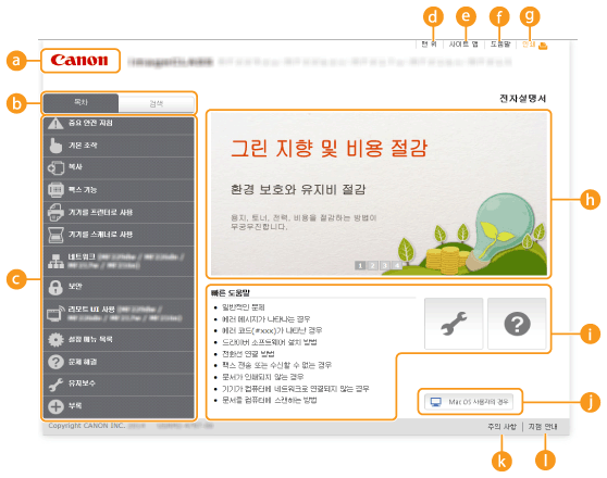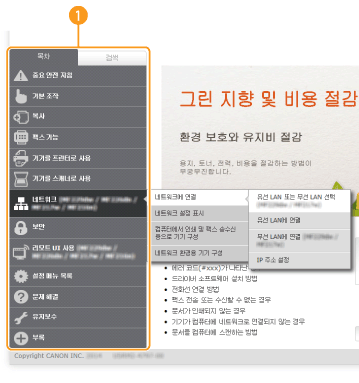 전자설명서를 보는 방법, 검색을 수행하는 방법 및 기타 정보를 표시하려면 클릭합니다.