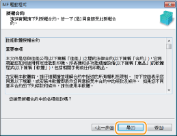 閱讀「授權合約」,然後按一下 [是] 以同意。