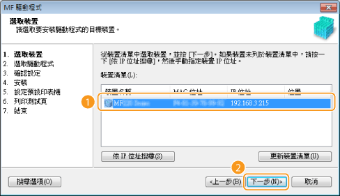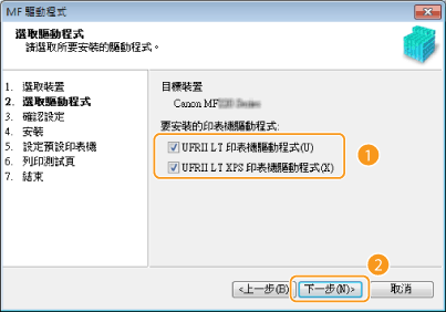 選取要安裝的印表機驅動程式,然後按一下 [下一步]。