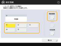 定形外サイズの用紙で、よく使うサイズを5種類まで登録できます。ここで登録した用紙は、給紙カセットや手差しトレイの用紙サイズ選択画面に表示されます(