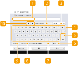 文字や数字を入力するときは、タッチパネルディスプレーに表示されるキーボード画面を使います。なお、数字を入力するときは、操作パネルのテンキーを使うこともできます。