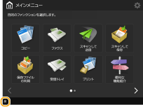 本機の基本機能を呼び出すボタンが配置されています。1画面にボタンが表示しきれないときは、画面下部の