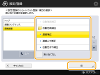 <設定/登録のショートカット>がメインメニューに表示されていない場合は、  <メインメニューのその他の設定>  <「設定/登録のショートカット」 の表示>を<ON>に設定してください。 登録できるショートカットの数:10 |