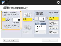 差し込んだ合紙が何ページ目に当たるのかをテンキーで入力します。たとえば、100枚コピーしたときに50枚目の次に合紙を差し込みたい場合は、「51」と入力します。