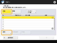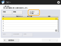 合紙を2枚以上差し込みたい場合は、<合紙の設定(挿入枚数)>のボタンを押し、枚数をテンキーで入力します。