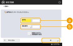 コピーカードリーダーで部門別ID管理をしている場合は、カードに割り当てられた部門IDを使用します。このため、部門IDの登録はできません。