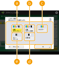 <フルカラー>原稿の色にかかわらず、フルカラーで読み込みます。<自動 (カラー/白黒)>を設定したときでも、カラー原稿の状態によっては白黒モードで読み込まれることがあります。このときは、<フルカラー>に切り替えてください。