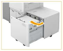 「PODデッキライト・C」「ペーパーデッキユニット・E」の側面に用紙がつまっているか確認する