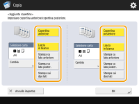 Per aggiungere una copertina, premere <Copertina anteriore>. Quando si copia sulla copertina, è possibile impostare dove copiare: sulla fronte, sul retro o fronte-retro.