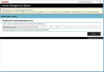 Starten Sie den Webbrowser für den Zugriff auf http://www.canon.com/lms/license/