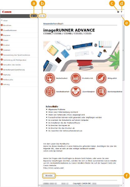 Klicken Sie hier, um Einstellungen wie Textgröße, Layout und Anzeigemethode für Anwenderhandbuchanzugeben.