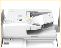 Wenn Sie großformatige Dokumente platzieren, ziehen Sie die Erweiterung des Dokumentenzufuhrfachs und die Erweiterung des Dokumentenausgabefachs heraus, um zu verhindern, dass sie über den Rand der Zufuhr rutschen und herunterfallen.