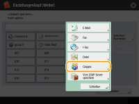In Zielwahl-Schaltflächen registrierte Ziele können zu einer Gruppe zusammengefasst und als einzelnes Ziel registriert werden. Außerdem können Sie eine Mailbox (temporärer Speicherplatz des Geräts) in einer Gruppe registrieren (Durchführen von einfachen Bearbeitungen an Dateien).
