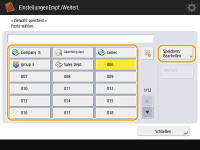 Ziele, die unter Zielwahltasten registriert sind, können in einer Gruppe zusammengefasst und als Einzelziel registriert werden. Ausführliche Informationen finden Sie unter Registrieren einer Gruppe in einer Zielwahl-Schaltfläche. Informationen zum Änderung oder Löschen von Informationen von Zielen, die unter Zielwahltasten registriert wurden, finden Sie unter Bearbeiten der in Zielwahl-Schaltflächen registrierten Ziele. Unter Zielwahl-Tasten gespeicherte Ziele werden auch im lokalen Adressbuch angezeigt. |