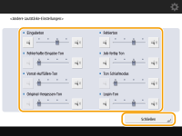 Legen Sie die einzelnen Bestätigungs-/Warntöne fest, und drücken Sie <Schließen>.