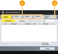 (Statusmonitor/Abbruch) drücken, wird der Bildschirm <Statusmonitor/Abbruch> angezeigt. Auf diesem Bildschirm können Sie den Druckstatus und Sendestatus sowie die verbleibende Tonermenge und den verbleibenden Speicherplatz überprüfen.