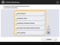 Wählen Sie die Einstellungen, die als Verknüpfung registriert werden sollen, und drücken Sie auf <OK>.