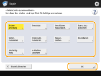 Sie können mithilfe von <Einstellungen ändern> die folgenden Einstellungen ändern oder festlegen, bevor Sie den nächsten Satz von Originalen (d.h. zwischen den Sätzen) scannen: Sie müssen die notwendigen Scan-Einstellungen vorab vornehmen, da Sie die Einstellungen in <Optionen> während dem Modus für die Auftragserstellung nicht ändern können.