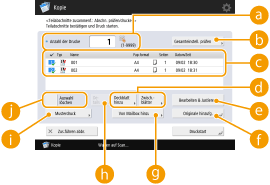 wird als 1, 2, 3... in der Reihenfolge angezeigt, in der die Dokumente gescannt und die Kopien gedruckt werden. Wenn Sie die Reihenfolge ändern möchten, drücken Sie <Auswahl löschen> in