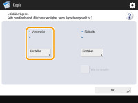 Wenn Sie das Formbild beim doppelseitigen Kopieren auf der Rückseite überlagern möchten, konfigurieren Sie <Rückseite>. Um dasselbe Formbild wie auf der Vorderseite zu überlagern, drücken Sie <Wie Vorderseite>. Um ein anderes Formbild als das auf der Vorderseite zu überlagern, drücken Sie<Einstellen>, und fahren Sie mit Schritt 5 fort.