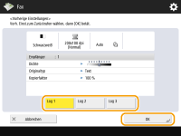 Sie können die in der Vergangenheit festgelegten Empfänger wieder abrufen. Ihre Scaneinstellungen wie beispielsweise die Dichte, werden ebenfalls zur gleichen Zeit wieder abgerufen.