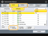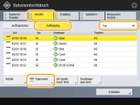 1 | Drücken Sie <Senden> oder <Empfang> <Auftragslog>. |