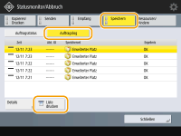 1 | Drücken Sie <Speichern> <Auftragslog> <Liste drucken>.![]() |