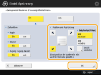 Legen Sie die Druckposition und die Ausrichtung des Originals fest, und drücken Sie dann die Schaltfläche <OK>.