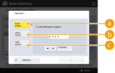 <Adress bereich>Legen Sie eine Reihe von IP-Adressen fest. Geben Sie eine separate Adresse für <Erste Adresse> und <Letzte Adresse> ein. Es ist nicht möglich, IPv6-Adressen einzugeben.
