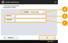 Persönliche Ordner werden basieren auf den in einem Authentifizierungsserver registrierten Ordnerinformationen angegeben, wie zum Beispiel die homeDirectory Attribute im Active Directory unter Windows. Es kann nur ein gemeinsamer Windows (SMB)-Ordner angegeben werden.