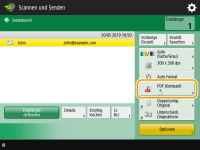 Wenn Sie <PDF>, <XPS> oder <OOXML> auswählen, können Sie verschiedene weitere Einstellungen vornehmen.