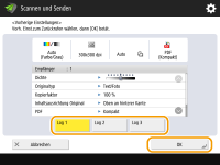 Sie können die in der Vergangenheit festgelegten Empfänger wieder abrufen. Ihre Scaneinstellungen wie beispielsweise die Dichte werden ebenfalls zur gleichen Zeit wieder abgerufen.