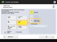 Wenn Sie <OCR (Durchsuchbarer Text)> auswählen, können Sie nur in einem Zoomfaktor von <1:1> oder <Auto> senden.