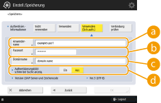 Wenn die IP-Adresse eingegeben wird, überprüfen Sie, ob der verwendbare DNS-Server nur Forward-Lookup (Anfragen) unterstützt. Wenn der DNS-Server nur Forward-Lookup unterstützt, drücken Sie <Nicht verwenden> oder <Verwenden> in <Authentisier.Informationen> in Schritt 4. Wenn <Verwenden (Sich.auth.)> ausgewählt wird, vergewissern Sie sich, dass der DNS-Server die Option Reverse-Lookup (inverse Anfragen) unterstützt.