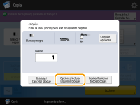 Si desea cambiar algunas de las opciones, como la escala de copia o la densidad del siguiente original, pulse <Cambiar opciones> en la pantalla, cambie las opciones y proceda con el paso 7.