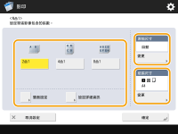 按下 <原稿尺寸> 中的 <變更>,可讓您選擇原稿尺寸,按下 <紙張尺寸> 中的 <變更>,可讓您選擇紙張尺寸。
