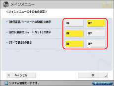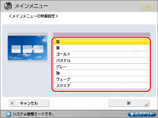 を押すと、次の画面が表示されます。表示された画面から項目を選択してメインメニュー画面表示の設定をします。