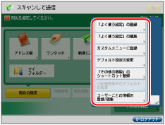 [「よく使う設定」の登録]、[「よく使う設定」の編集]:現在の設定に名称をつけて保存できます。登録した設定は、各ファンクション画面の[よく使う設定]キーから呼び出すことができます。