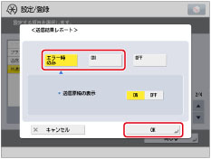 送信結果レポートには、ファクス、Eメール、I ファクス、ファイルサーバーの宛先に送信したときや、ボックスに保管したときの送信結果がプリントされます。ただし、 暗号化PDFを設定して送信を行ったときには、<送信原稿の表示>が「ON」に設定されていても、原稿は表示されません。