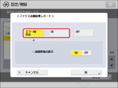 本設定を「ON」にしてファクス同報送信を行った場合、ファクスマルチ送信結果レポートが出力されます。(→ファクスマルチ送信結果レポート)