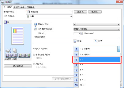 [ページ設定]ページの[ページレイアウト]から[2 in 1]を選択します。