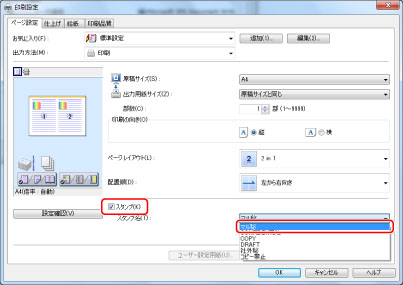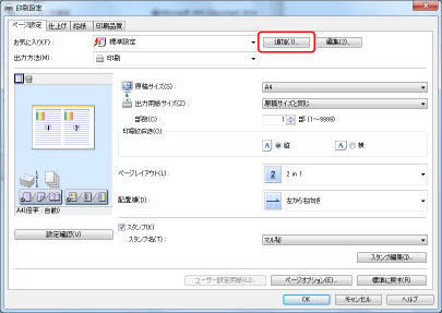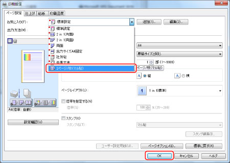 [お気に入り]から[2ページ/枚(マル秘)]を選択して、[OK]をクリックします。