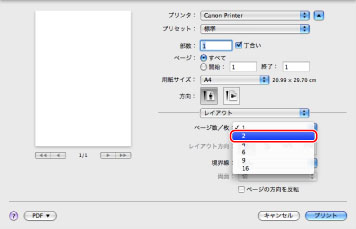 [ページ数/枚]で[2](用紙1枚に配置するページ数)を選択します。