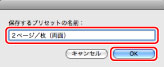 [保存するプリセットの名前]に、たとえば「2ページ/枚(両面)」と入力して、[OK]をクリックします。