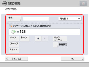 [新規宛先の登録]→[ファクス]を押して、B事業所のファクス番号を設定します。