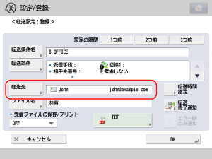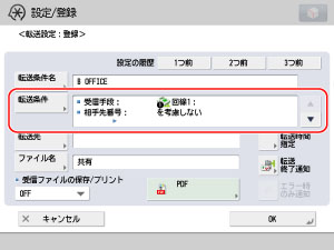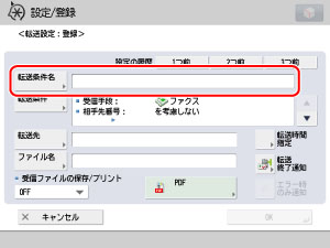 [転送条件名]を押して、設定する条件の名前を入力したあと、[OK]を押します。