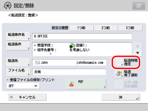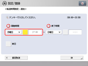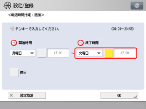 [転送時間指定]を押して、転送条件を有効にする日時を設定します。