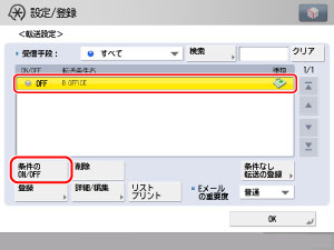 登録した転送条件を選択して、[条件のON/OFF]を押します。