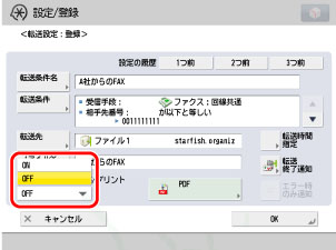 「OFF」にしておくとコンピューターに転送されずプリントされるので注意が必要です。
