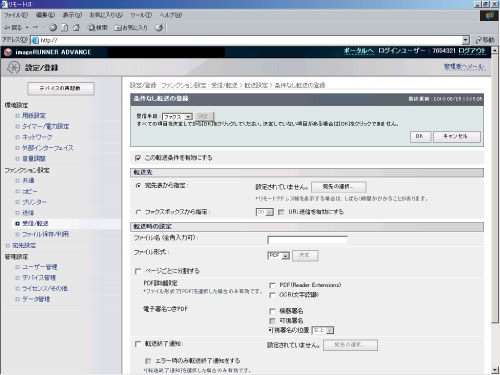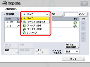 G3回線増設キット(2回線)装着時の転送条件数は[ファクス:回線共通]、[ファクス:回線1]、[ファクス:回線2]の合計が、1000件までです。